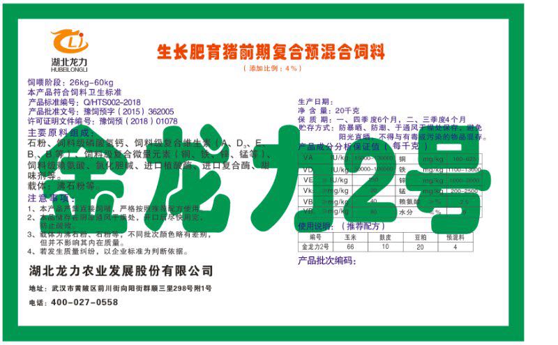 湖北龍力農(nóng)業(yè)發(fā)展股份有限公司坐落于武漢市黃陂區(qū)前川街向陽街群順三里298號附1號。公司成立于2014年6月,公司自成立以來把“創(chuàng)全球最大養(yǎng)豬綜合服務(wù)”為企業(yè)愿景。致力于打造教保料品牌”作為公司發(fā)展的明確目標(biāo)。公司一直致力于豬營養(yǎng)的研究和開發(fā),積極與國內(nèi)外高校和科研機構(gòu)合作,推廣養(yǎng)豬技術(shù)、動物營養(yǎng)新概念,向世界農(nóng)牧企業(yè)學(xué)習(xí)與合作。公司采用國內(nèi)先進的生產(chǎn)工藝,選擇高精度電子配料秤,高均勻度、無殘留混合機等先進設(shè)備....